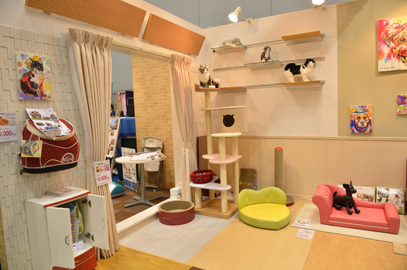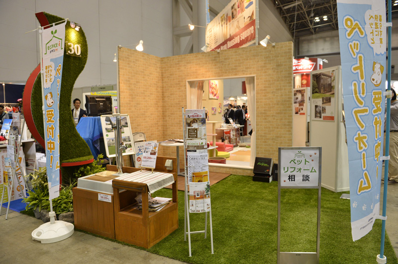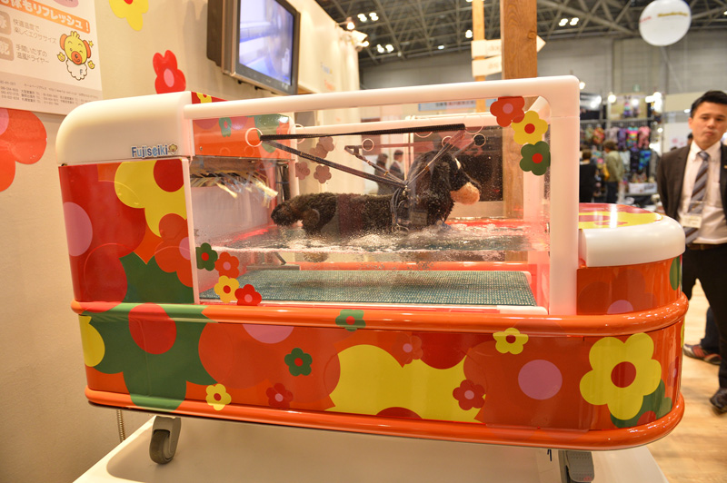 インターペットではペットがすべりにくいフローリングのコーティング、ウォーキングのできる専用バス、高齢ペット用の歩行補助ハーネス、腰痛や床ずれ予防のドッグケアマット、目にセンサーを当てて体温を計る体温計、ペットの住みやすい家のリフォームまで、日ごろはなかなかお目にかかれない製品やサービスに触れることができるので、ペットとのこれからの暮らしに必要なこともイメージしやすいかと思います。