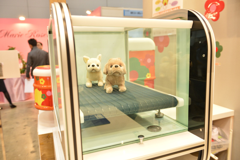 最近ではペットと一緒に泊まれるホテルや旅館、一緒に食事ができる飲食店も増えてきました。休日にはペットとお出かけを楽しむ人も多いでしょう。その一方で、ひとり暮らしや共働きだったりすると、仕事のときはペットがひとりさびしくお留守番……自分もペットが気になりながら仕事……という現実も。そんな人にオススメの最新アイテムなども展示されています。かわいいペットとはいつも一緒にいることが理想ですが、離れていてもペットの様子をチェックできたり、声をかけてコミュニケーションを取れれば、私たちとペットの不安やストレスもやわらげることができます。ネットワークカメラ搭載の給餌器などでペットの様子を確認し、会社や外出先からスマートフォンで操作して声をかけながらお水やおやつをあげたり、空いた時間に遠隔で遊べるアイテムや、ペットの体の振動を感知し、てんかんなどの病気の状況をすぐに知らせてくれるサービス、センサーから取得したペットの行動や健康状態を可視化するサービスなども展示されています。