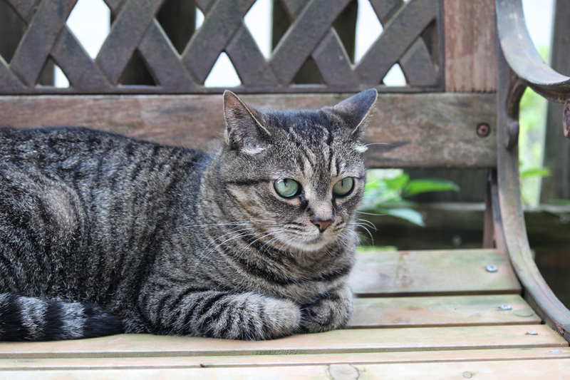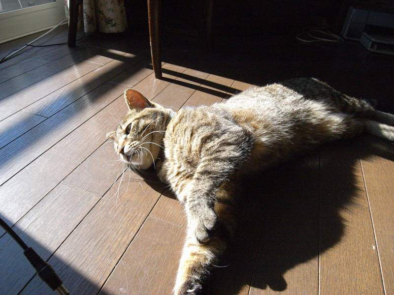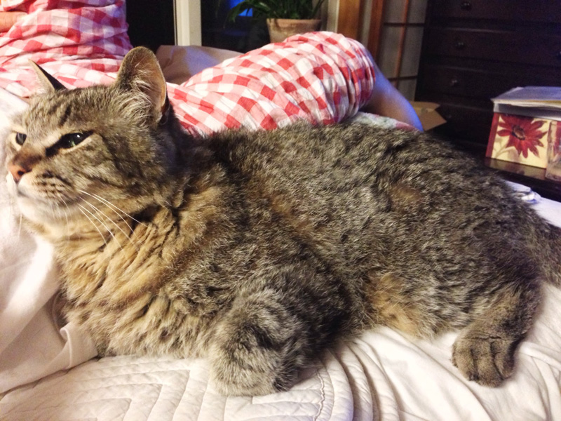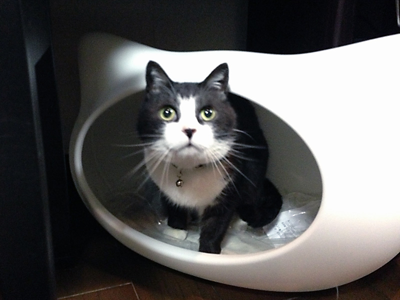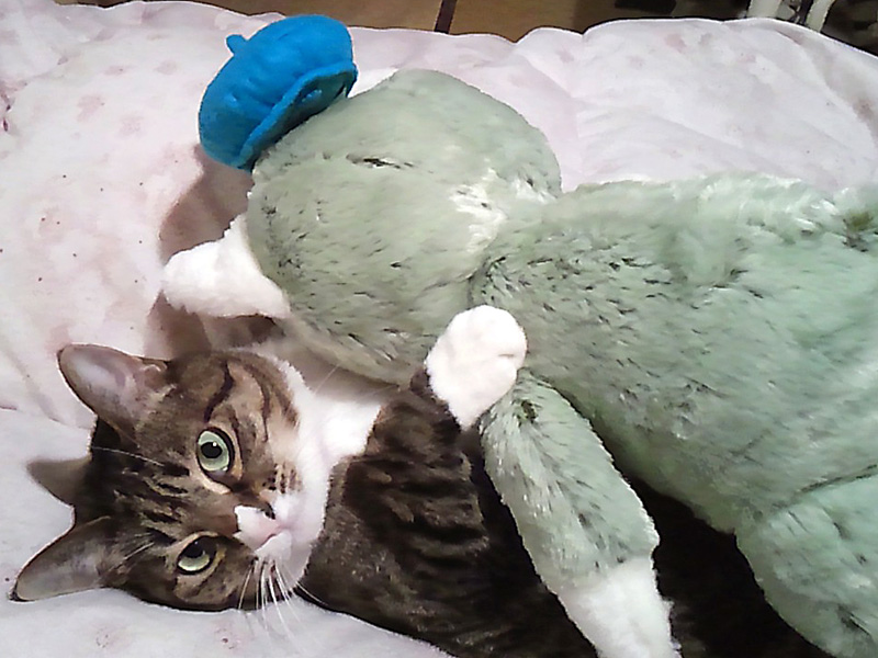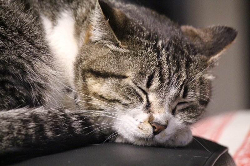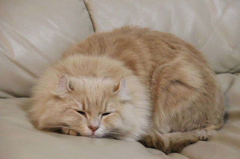 通称「人をダメにするソファ」の上で、よく重なってダメになっているご長寿猫たち
