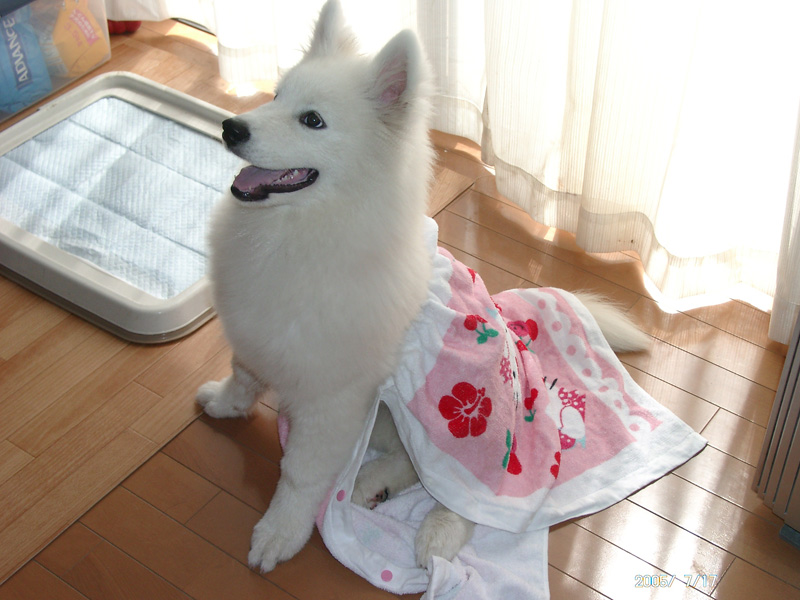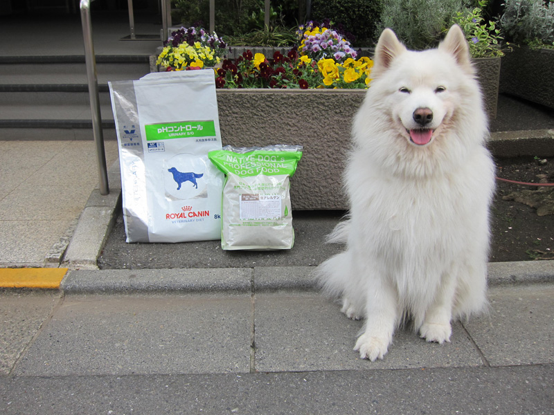 成犬になってからは、ナチュラルバランス、ネイチャーズバラエティ、ピナクルなど、穀物系ではないフードのローテーションでした。サモエドは白くてモコモコのコート(体毛)が特徴ですが、与えるフードによっては涙焼けやよだれ焼けが多くなるのが困りもので、フードの選択には気を使います。うちの子の場合は穀物系フードを与えるとオナラの量が増え、うんちの質もいまひとつだったので、魚や肉中心のオーガニックフード中心で固定しました。