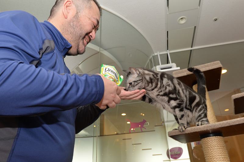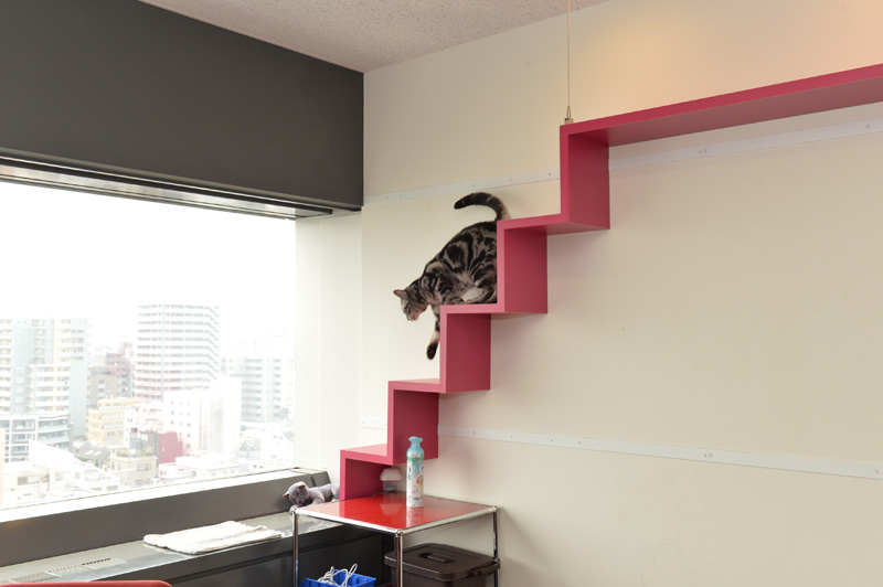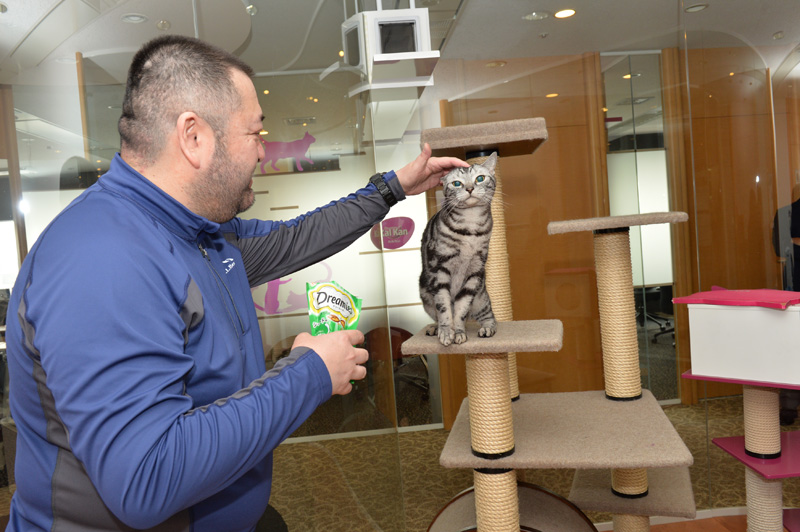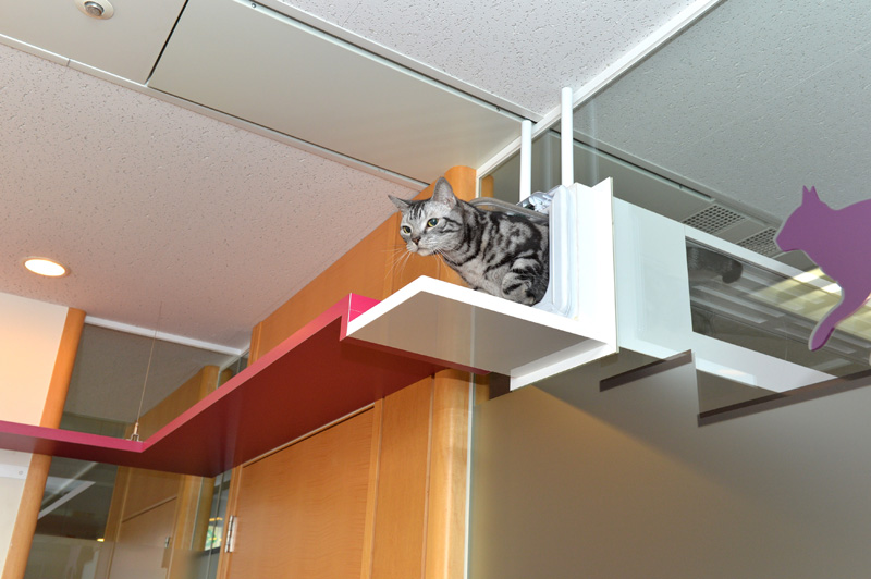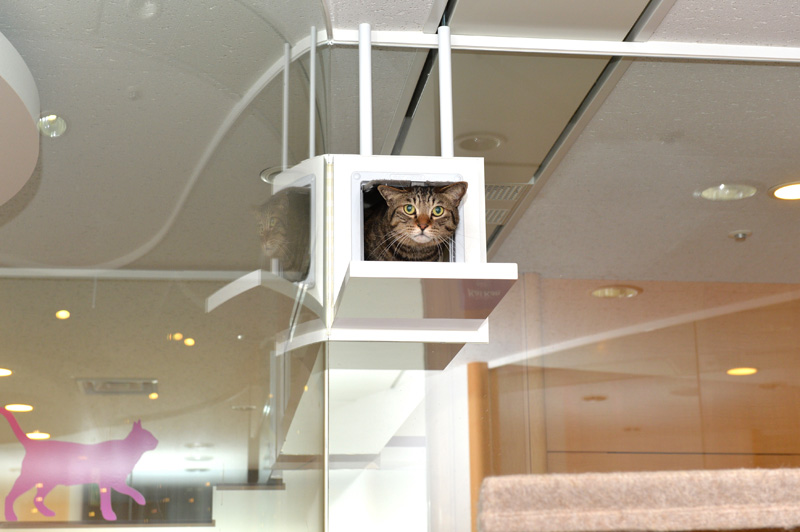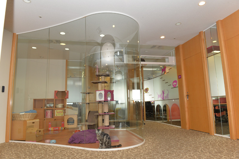 ちなみにこの部屋、社員の方はお昼休みなどに入ってOKだそうです。そして猫と自由にコミュニケートできるそうです(おやつは原則NG)。休み時間に猫と触れあえるなんてサイコーですな♪