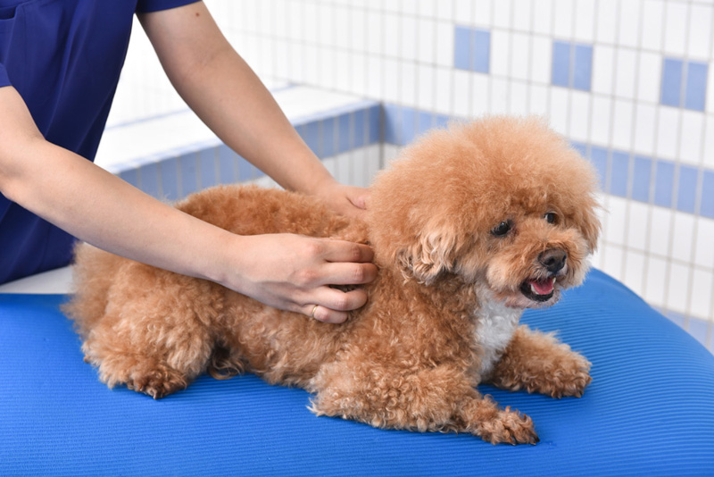 犬の状態に合わせてさまざまな手技を施し、筋肉のこわばりをほぐします