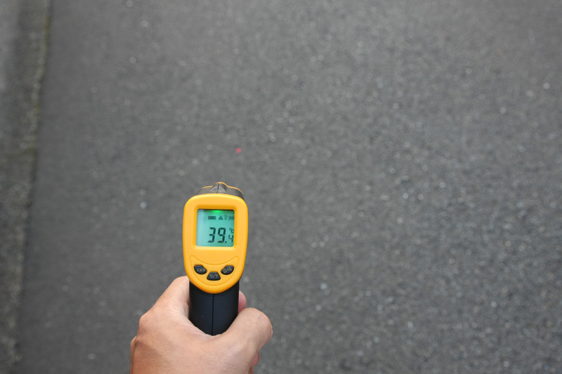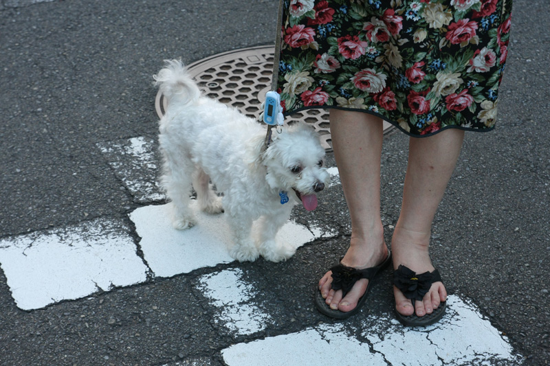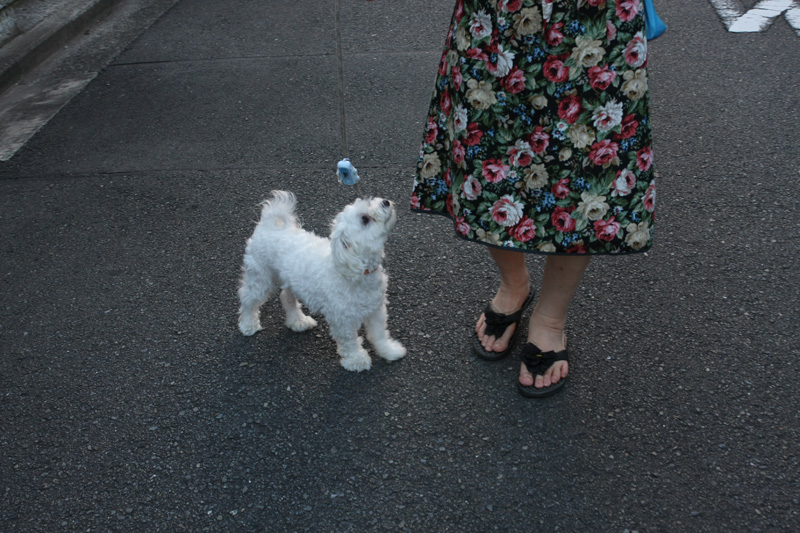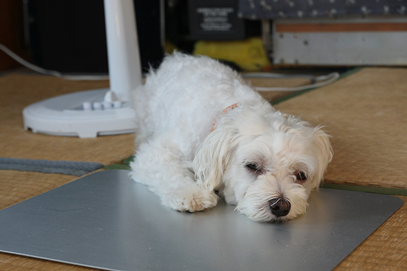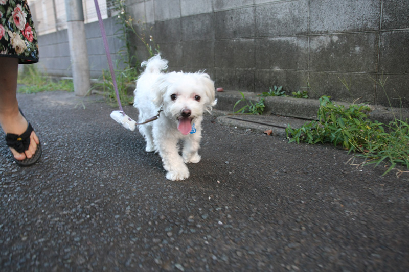お散歩に行く前、「待て」や「お座り」をさせて定吉くんを待機させていたが、スグにやめてしまう原因がようやくわかった。お散歩が嬉しくてソワソワしている以上に、長く待てやお座りをしていると、アスファルトが暑いのだ。日の入りの時刻と言えど、アスファルトの温度はお風呂並み。ヒトでもうだる暑さの中、お風呂並みの温度の床に座ったり、寝転がったら汗が吹き出してくる。