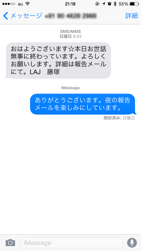 こんなひと言のメッセージでもうれしいもんだ。何も連絡がないと、本当に来てくれているのだろうか? とか心配になってしまうから、このメールをもらっただけで夜まで心配しなくてすむのだ。