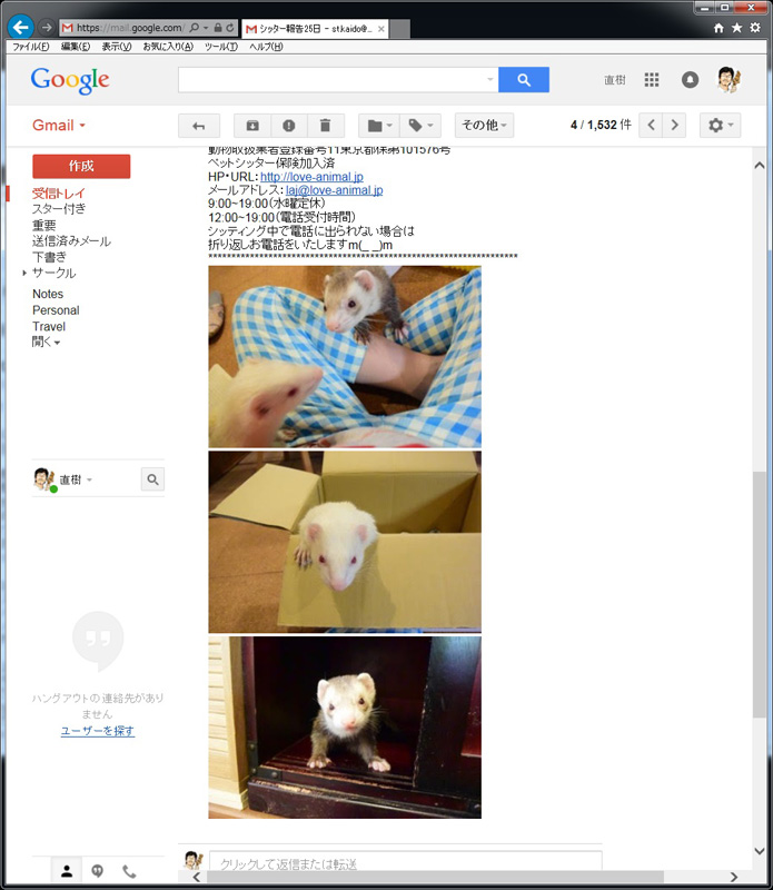 打ち合わせ当日、いらっしゃったのはLove Animal Japan (ラブ・アニマル・ジャパン)代表でもある藤塚あかねさん。すごくしっかりした方で第一印象は合格である。しかもお坊ちゃまたちがきかん坊だったときのために革手袋を持参していた(笑)