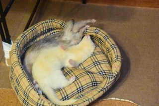 夜中に帰ると、お坊ちゃまたちはいつものようにスヤスヤと就寝中。起きてきた2匹をケージから出すといつものように遊び始め、元気いっぱいで何ごともなかったようだ。