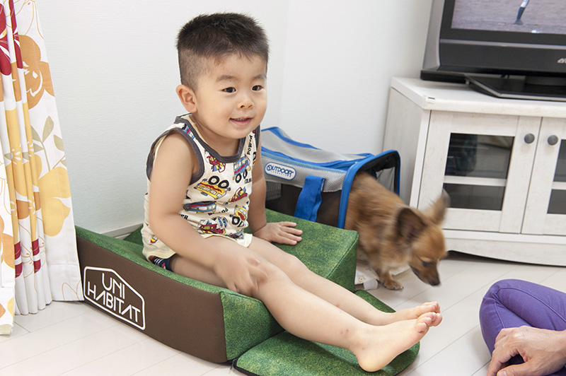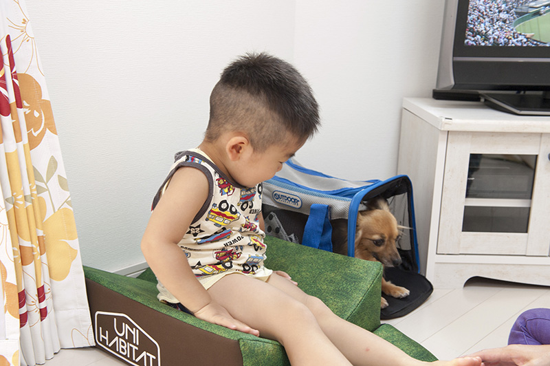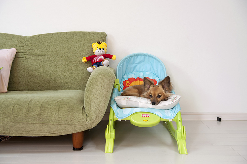 わが家にはリビングに2カ所、寝室に1カ所、愛犬の専用くつろぎスポットがあります。これも犬を飼っているとよくある光景かもしれませんが、ソファも大好きで、誰もいないときはひとりで独占していることもよくあります。ですが、最近では息子がソファで遊んだり踊ったりして、「ウーッ」と軽く威嚇しながらトボトボと撤退する光景もよくみます。