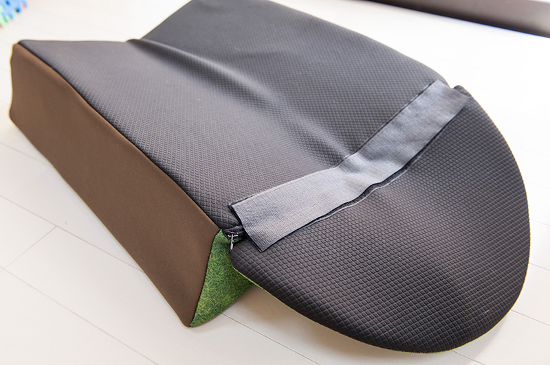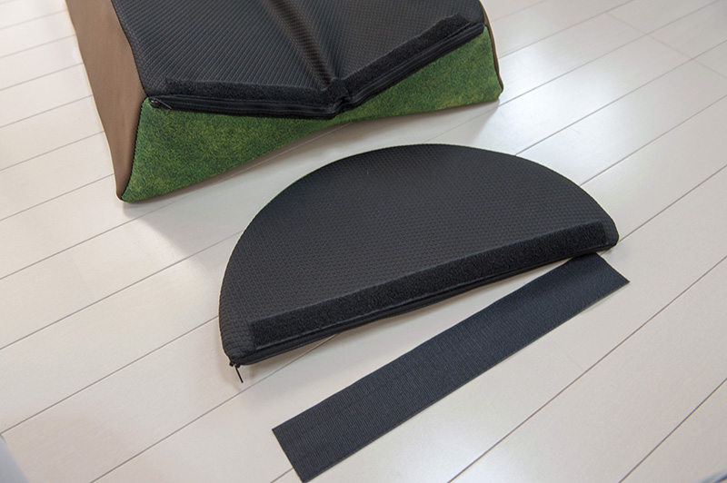 ベッドとステップを背面でマジックテープで留めるだけのシンプルな作業で完成です。カバーも簡単に取り外せて、丸洗いできるのも魅力です。