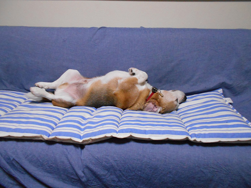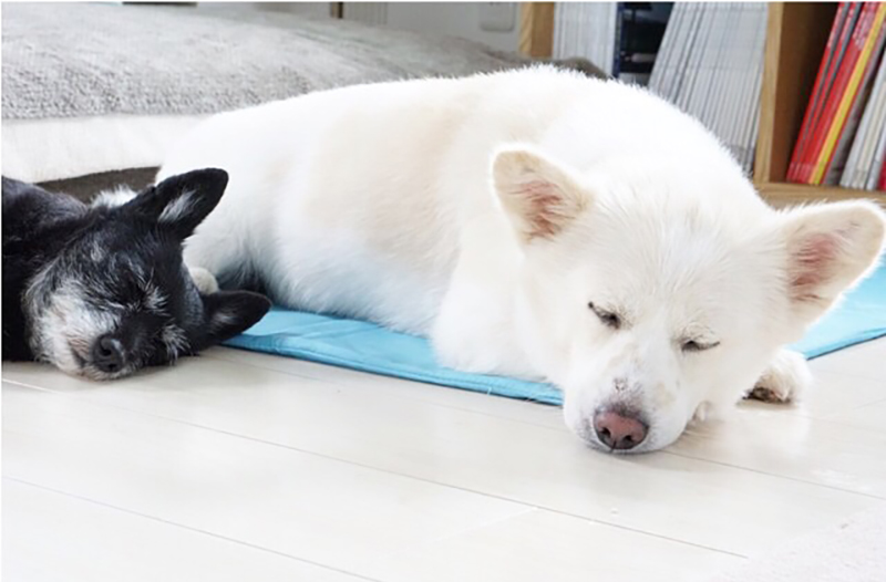 昨今のエアコンは省エネ技術が進み、室内温度をさほど低下させずとも涼しさを感じられるものが多くなっています。また、省エネのためエアコンの設定温度を27℃、28℃にしているご家庭もあるでしょう。人間にとっては確かにこれで充分快適なのですが、ペット、とくに犬にとっては快適でない場合があります。室温の目安は25℃~26℃と言われることも多いですが、わが家のサモエドも、25℃を越えると目に見えて“ハアハア”が増えます。省エネ性を多少犠牲にしてもエアコンの設定温度を下げ、ペットが寝ている場所に向かって扇風機でやわらかな風を送るなどして、体温の放散をサポートするべきでしょう。風が当たらない場所では体温の放散能力は大きく低下してしまいます。