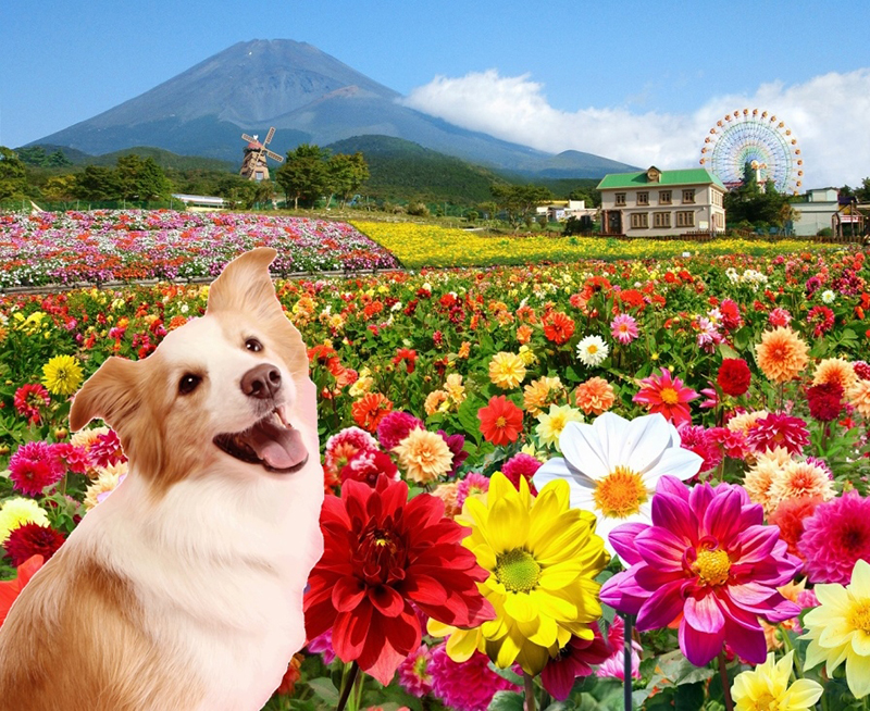さらに、園内では「天空のダリア祭2015」も開催されており、関東・東海エリア最大級の2万株の「ダリア」が見ごろを迎えています。世界遺産・富士山とカラフルに咲き誇るダリアをバックに、愛犬を撮影できる絶好のスポットとなっています。詳細は下記URLでご確認ください。