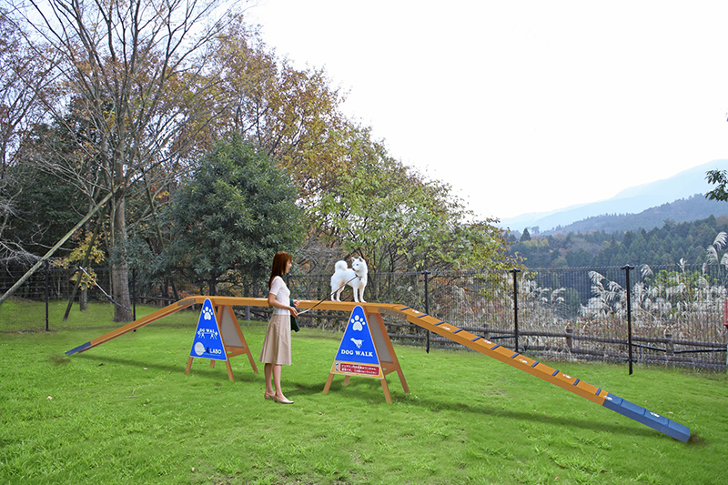 「ぐりんぱ」では、通常の場合は愛犬はケージに入れての入園となり、アトラクションの利用はできませんが、期間中はリード(伸縮リードは不可)での入園が可能で、「観覧車」や「ボート」など4つのアトラクションを愛犬と一緒に利用できます(一部制限あり)。また、特設のドッグラン「天空のドッグパーク」も用意されており、愛犬のリードを外し、大自然のなかを思いっきり走り回ることができます。