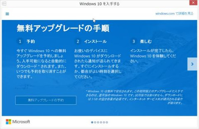 Windows 10への無償アップグレード予約が開始 ~Windows内から実行