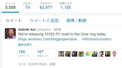 Microsoft、Slow ring向けにもBuild 10162を公開
