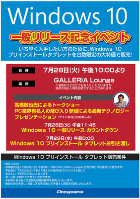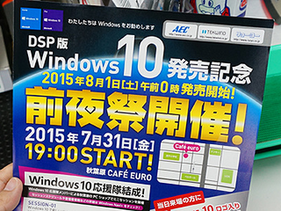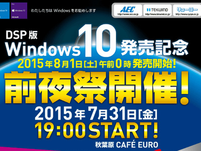 DSP版Windows 10は8月1日発売、発売記念前夜祭も秋葉原で開催