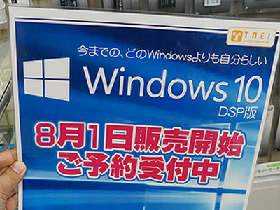 DSP版Windows 10の予約が25日から開始、発売は8月1日 31日夜から複数のショップが深夜販売を実施更新:ソフマップも深夜販売を実施
