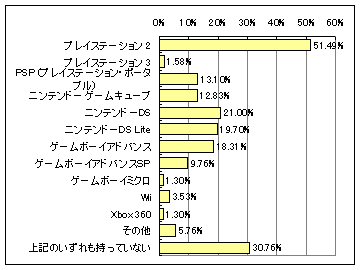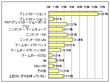 Lite」で約31%、gooリサーチでは「ニンテンドーDS」で、約21%が所有している。Watch読者においては、「ニンテンドーDS