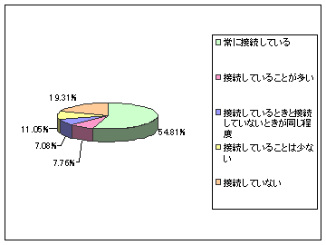 3」では常時接続が約65%、「Wii」では約55%、「Xbox 360」では約64%だ。そしてこの3機種については、まったく接続せずに使っている人はかなりの少数派だった。一方gooリサーチでは常時接続で使っている人が、「プレイステーション