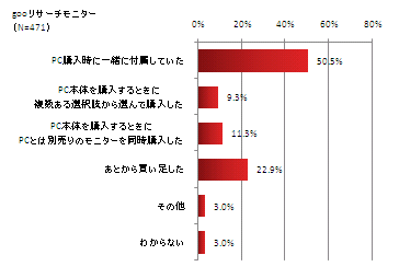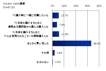 自宅パソコンの液晶モニターに関する調査~ Watch読者の半数が液晶モニターを別途購入 ~ |