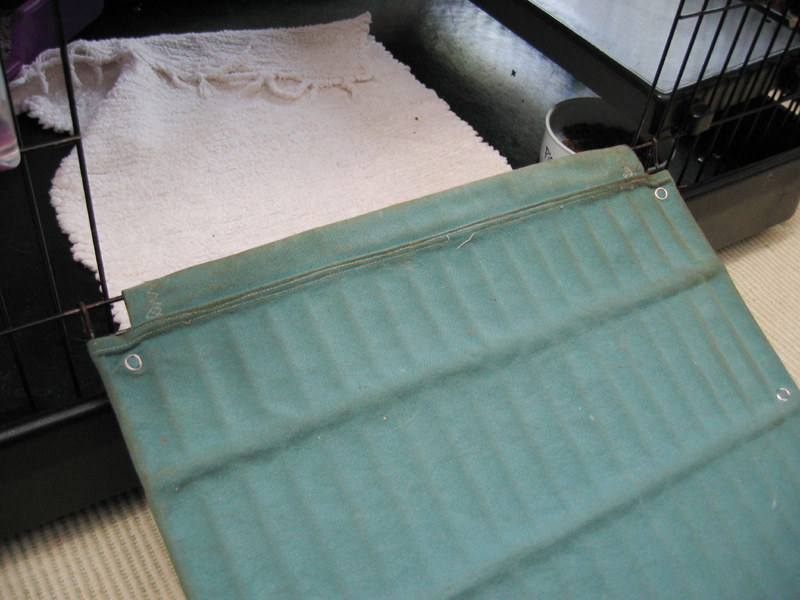 スロープドアには布のカバーをして足がネットに引っかからないように。また雄特有の物が引っかかることがあるので重要である。