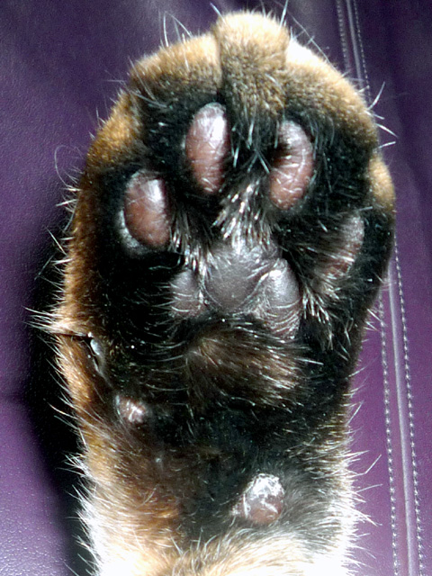 きじとらタイプのサンプル。光の当たり加減で肉球の色が黒~やや紫がかったピンクに変化する、ややハイグレード向け。