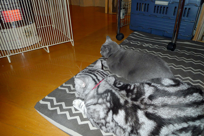 手前が拙宅猫の野性的なほー、とろ様。奥がうか様。うか様は、とろ様を教育中。これは「人間は猫がストーブに当たっている光景を喜ぶニャ。だからしばらくこのまま居て、人間どもを喜ばしてやるニャ」と指導しているところ。