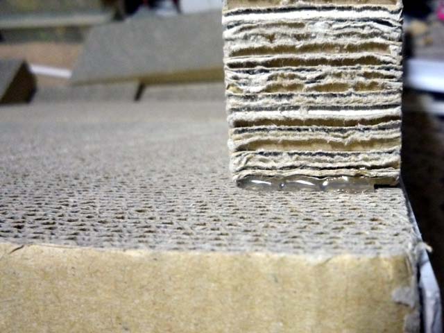 [15] 側面の壁になる「つめみがきコア」を、やはりホットボンドで固定。微妙に隙間が空いたら、後からホットボンドを充填。