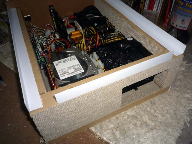 [44] 余ってたLアングルを電源側のストッパーにする。全部ホットボンドで接着。