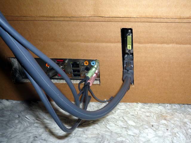 [46] DVIケーブルやUSB/Audioケーブルを装着。サイズはぴったりだった。