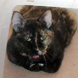 サビ猫夏乃ちゃん、2歳半位の女の子。特技は天気予報。雨の日の前にお布団におしっこします