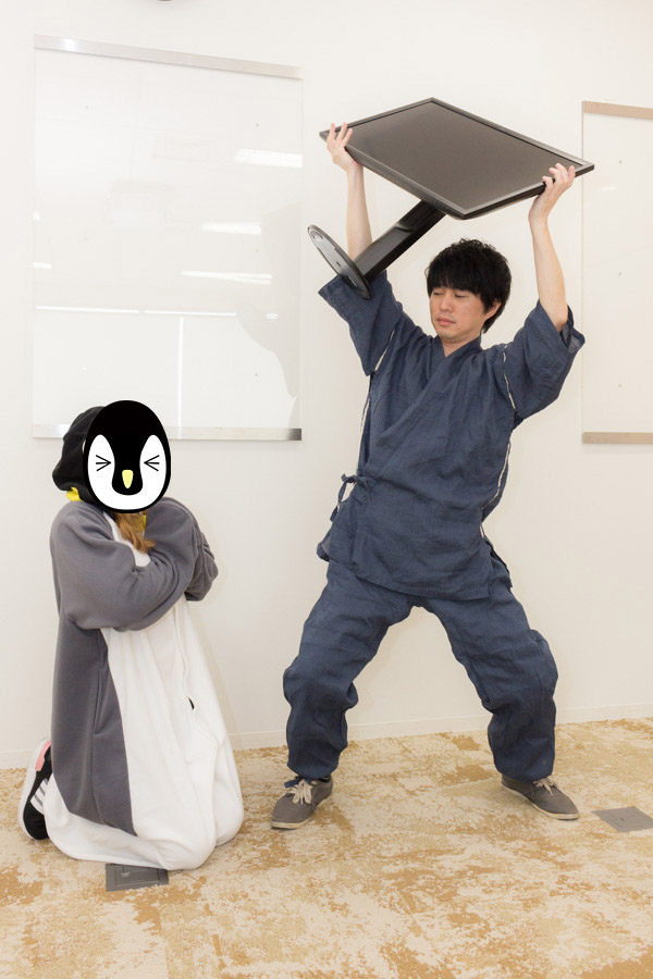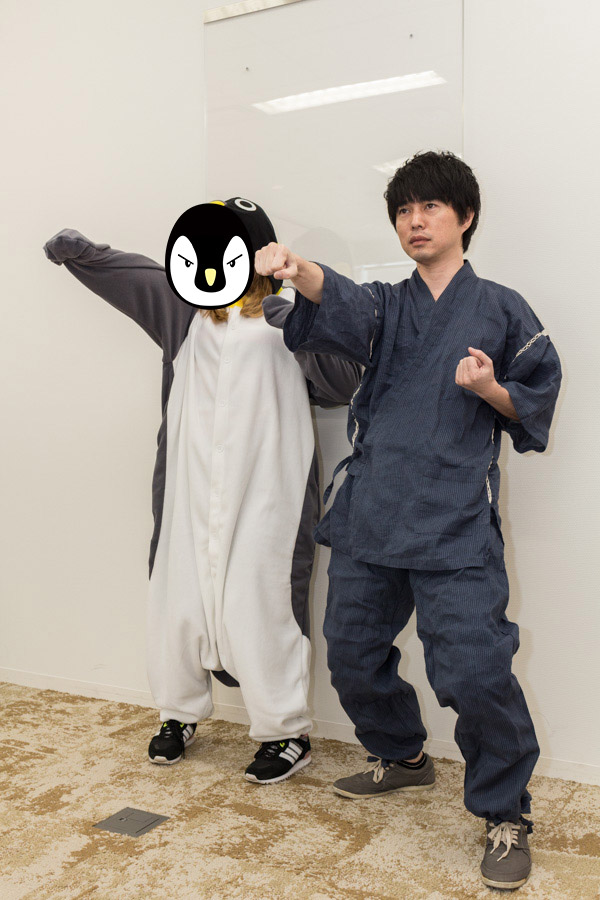 会議室で修行中の4K修行僧にエンカウント。ペンギンさんもいっしょに必殺「4K正拳突き」の練習をさせてもらうことに