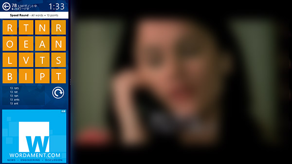 | Internet Explorer 10などに動画をスナップして、Webブラウジングしながら視聴できる | 親画面側で動画を再生しながらスナップ側の小画面でゲームをプレイ |
