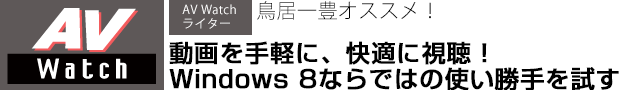 Windows 8の魅力のひとつは、PCならではのスペックを活かしたマルチメディア処理。とくにタブレットタイプのPCとModern UIによる直感的な操作はかなり快適で、動画や音楽再生といったAVユースで、かなりの威力を発揮すると実感した。