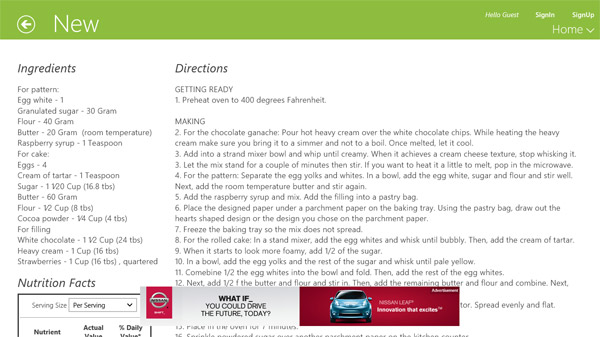 起動すると「Breakfast」「Dessert」などのカテゴリ別にブラウズできるほか、右上の「HOME」メニューや下部に表示されるメニューから、「Healthy」「Method(煮る、焼くなどの料理方法)」などのいろいろなカテゴリから選択することもできる。ビデオ数も35,000件以上あるので詳細なカテゴリ別に見ていっても十分見応えがある。もちろん検索から食材を入力してレシピを探すことも可能だ。右上の「SignUp」からユーザー登録すると「Favorites」フォルダにお気に入りレシピもまとめられる。