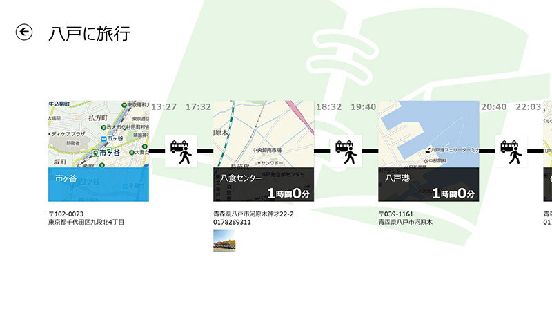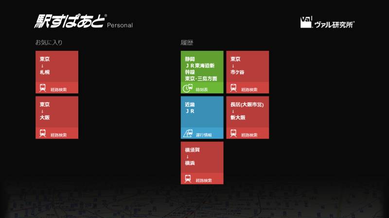 電車やバスでの街巡りを楽しむ場合は、「駅すぱあと Personal」もおすすめだ。超・定番のの経路探索サービスだが、Windows ストアアプリもやはり便利。ネットに接続した状態であれば、GPS未搭載の端末であっても現在地を取得できるので、駅名指定の手間を減らせる。