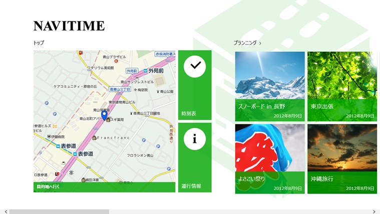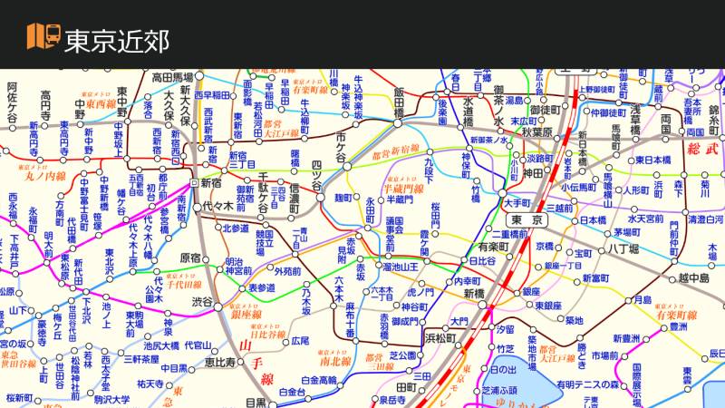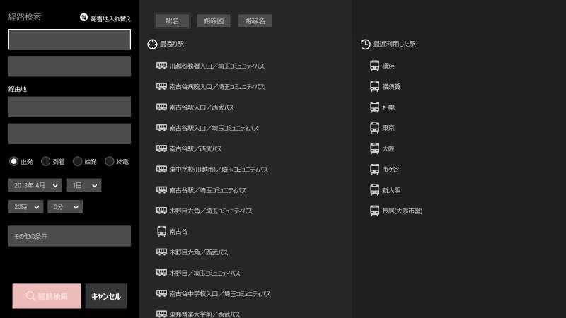 また、大都市圏周辺であれば、路線図機能をぜひ使いこなしたい。画面ドラッグでスクロールさせることができるので、ちょっとした地図のような効果も期待できる。一度使ってみると分かるが、この路線図機能、10インチ級の大画面がほぼ当たり前のWindows 8/RT端末とは特に相性がいい。