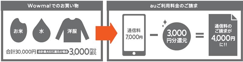 KDDI、Wowma!での購入金額の最大10%をau通信料金に還元