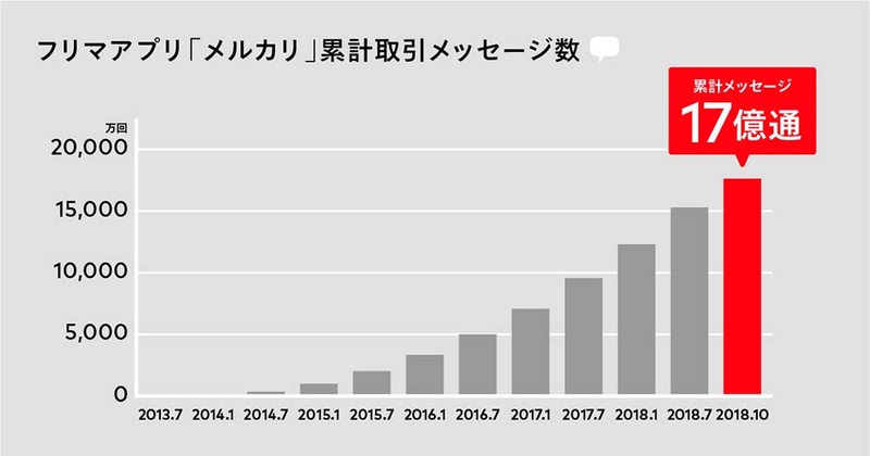 メルカリ、累計流通額1兆円突破。累計取引メッセージ数は17億通