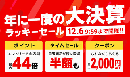 Wowma!、ポイント最大44倍など「ラッキーセール2018」。12月1日から
