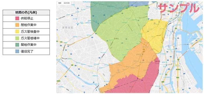 東京ガス、大規模地震時にガスの停止・復旧状況を色で判別できる「復旧マイマップ」