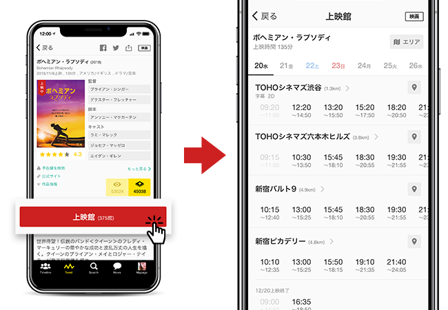 映画レビューアプリ「Filmarks」に上映スケジュール機能