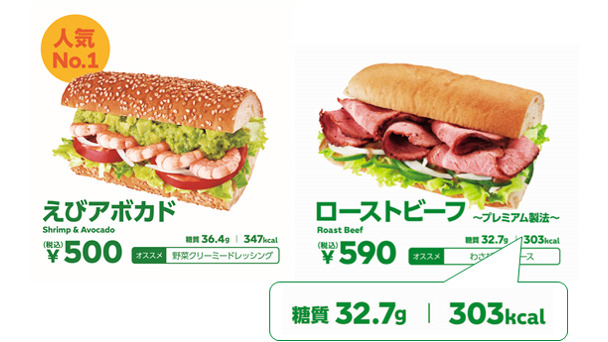 サブウェイ、店頭メニューで糖質表示スタート。栄養バランス管理をサポート