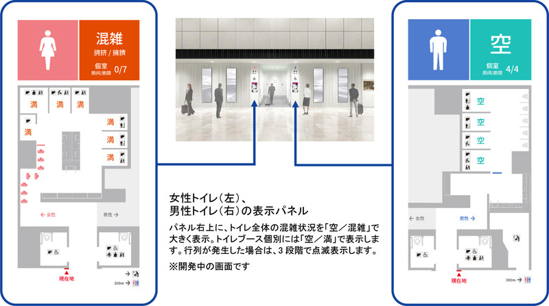 • トイレ個室で広告配信。混んできたら退出促す