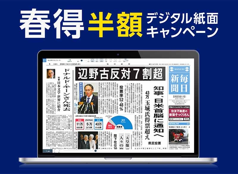 毎日新聞の電子版が半額に「デジタル毎日 春得キャンペーン」。1,600円