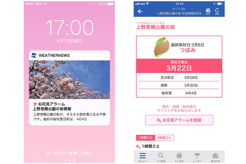 ウェザーニュース、レーダーに桜モード。桜前線の動きを予想