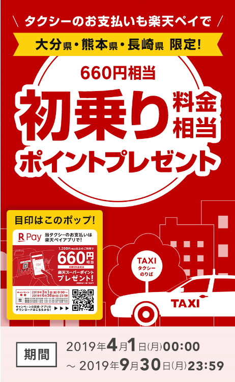 楽天ペイ(アプリ決済)が熊本・長崎・大分のタクシーで利用可能に