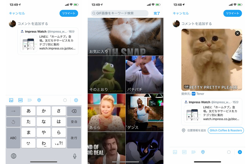 TwitterにGIFアニメ撮影・投稿機能