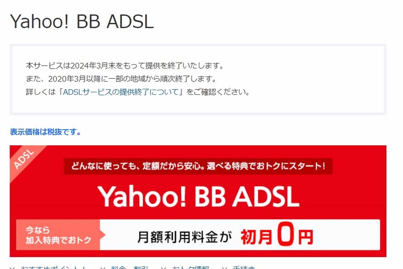 「Yahoo! BB ADSL」も新規受付を終了、2月末で