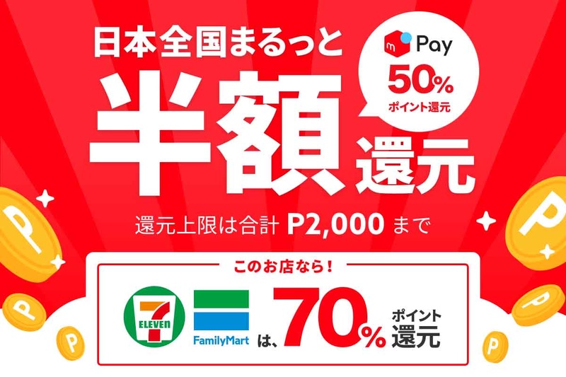 メルペイ、50%還元キャンペーン開始。GW終了まで。セブンは70%