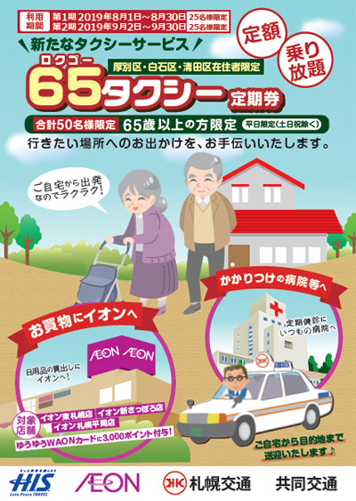 札幌で1カ月間タクシー定額。65歳以上の移動手段の確保目指す