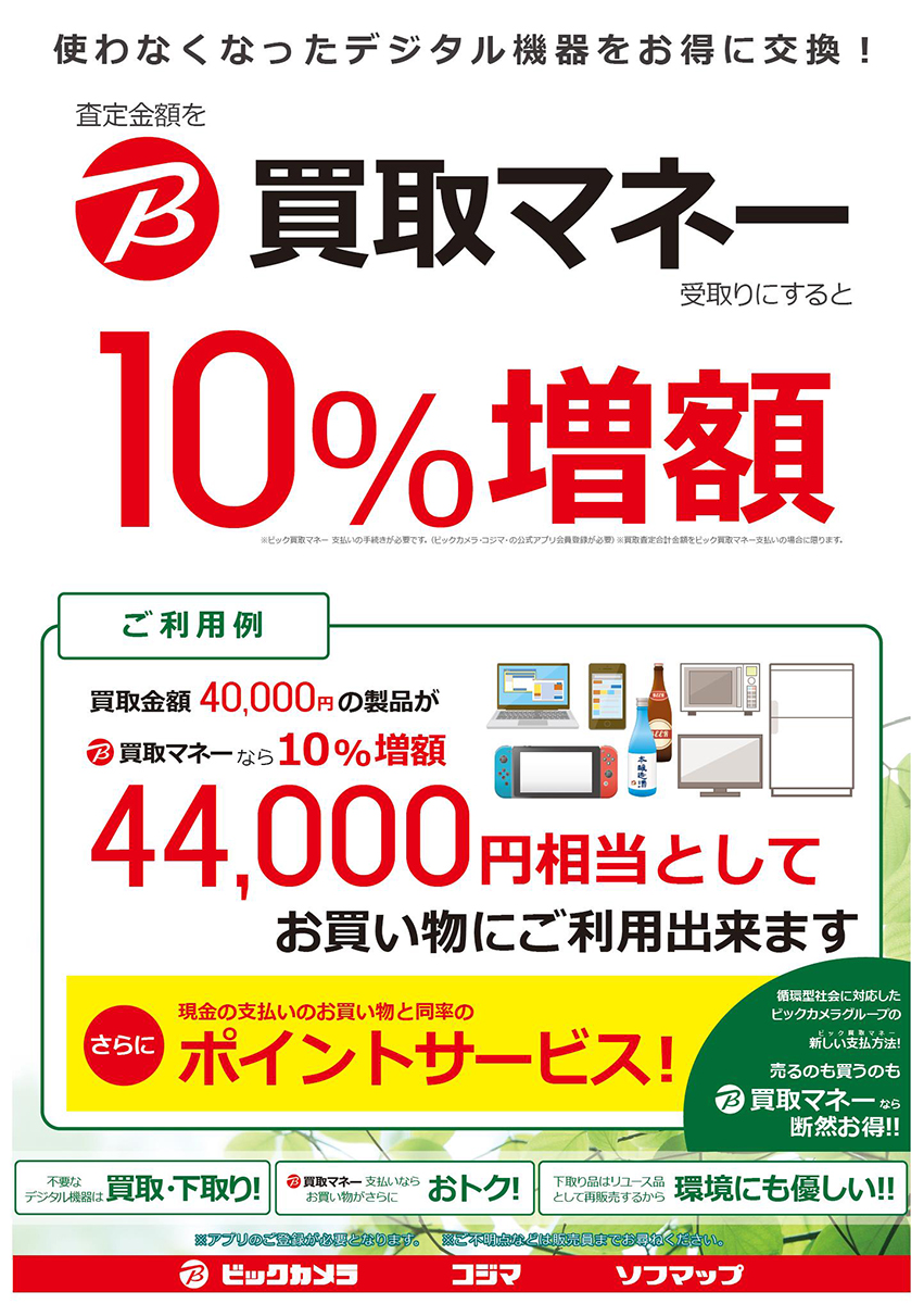ビックカメラ・ドットコム、「買取マネー」が使用可能に